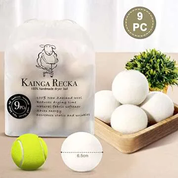 Kainga Recka Wool Dryer Balls, 9-Pack Organic Dryer Balls, 100% New Zealand Wool Handmade Chemical-Free Eco Dryer Balls - Laundry Reusable, Anti Static Reduces Clothes Wrinkles & Shorten Drying Time