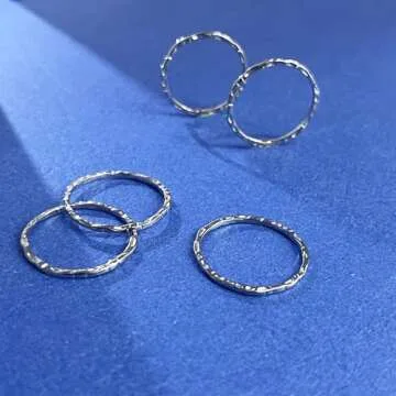 Kakikaki 925 Sterling Silver Minimalist Hammered Textured Thin Knuckle Midi Stacking Rings