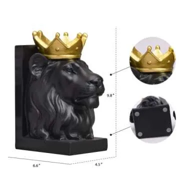 Show moreTransform your space with the stunning Kakizzy Book Ends Decorative, Lion Bookends for Shelves. These exquisite lion figurines are more than mere book stops; they are a statement of style perfect for any modern home or office decor. Crafted from high-quality resin with a sleek black finish, they combine luxury and functionality effortlessly. With meticulous attention to detail, each piece has been carefully designed and polished to perfection, ensuring that these lion bookends not only keep your books in place but also add a touch of elegance and sophistication to your bookshelf or desktop. Measuring 9.8 x 4.5 x 6.6 inches, they fit comfortably on any shelf while providing a striking visual appeal.