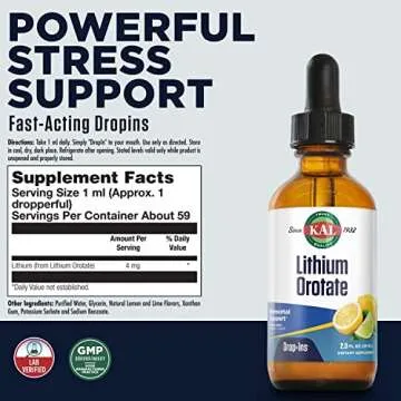 KAL Lithium Orotate Dropins, Chelated | Mood & Relaxation Support | Natural Lemon Lime Flavor | 2oz, Approx. 60 Serv.