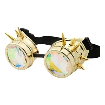 Kaleidoscope Goggles | Vintage Steampunk Rave Rainbow Glasses | Punk Costume (Gold)