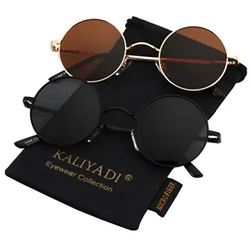 Stylish KALIYADI Round Polarized Sunglasses for Men and Women - Retro Metal Frame - UV Protection (2 Pack) 45mm