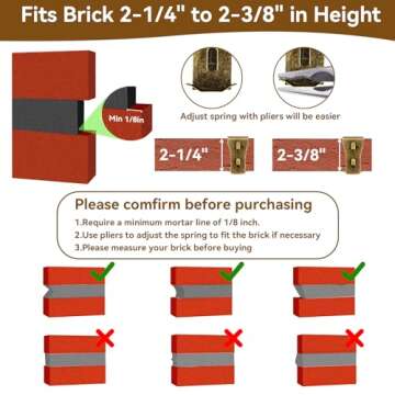 Show moreTransform your decorating experience with the kalnety Brick Clips – a remarkable set of 8 durable hooks designed to effortlessly hang your cherished items on brick surfaces. Perfect for both indoor and outdoor applications, these patented clips are specifically tailored for bricks measuring between 2-1/4" to 2-3/8" in height. With their innovative design, you can hang everything from seasonal decorations to picture frames without the need for drilling or damaging your walls.