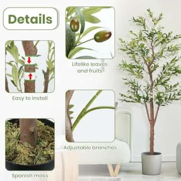 Show moreTransform your space into a Mediterranean paradise with the KalTell Artificial Olive Tree, standing gracefully at an impressive 6 feet tall. This stunning faux tree perfectly mimics the charm of a natural olive tree, boasting a finely crafted wooden trunk and abundant lifelike leaves and fruits that bring a touch of nature to any indoor setting. Whether you wish to brighten up your home, office, or cozy nook, this ideal decorative piece adds elegance and a sense of tranquility without any of the headaches associated with real plants. Designed to flourish in every season, you'll enjoy its evergreen beauty year-round.