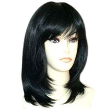 Kalyss Black Wigs with Hair Bangs Medium Long Straight Layered Synthetic Hair Wigs for Women