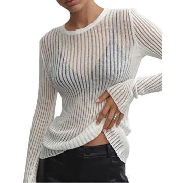The sweater is see-through, making it perfect for layering or wearing with a stylish bralette.
