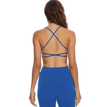 KAMISSY Women Strappy Workout Sports Bra Sexy Square Neck Criss Cross Back Padded Gym Backless Fitness Yoga Crop Cami Top Blue