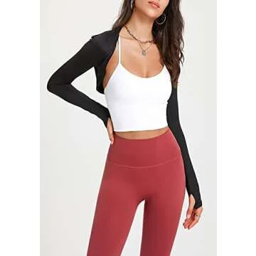 KAMISSY Women Workout Long Sleeve Bolero Shrug Crop Top with Thumb Hole Slim Athletic Open Front Cropped Cardigan Shrug Shirt Black