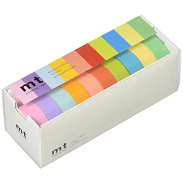 Show moreDiscover the creative possibilities with the Peel and Stick Masking Tape mt, a delightful set that includes 10 vibrant solid colors designed to inspire your artistic endeavors. This high-quality masking tape is perfect for various applications, including note and letter decoration, scrapbooking, DIY projects, and more. Each roll measures 0.6 inches (15 mm) in width and spans an impressive length of 25.4 ft (7 m), providing ample tape for all your creative needs. Made from premium Japanese washi paper, this tape is both easy to tear by hand and remarkably adhesive without leaving any sticky residue behind. Whether you’re an artist looking to add flair to your creations or a DIY enthusiast needing reliable tape for your projects, this product will not disappoint.