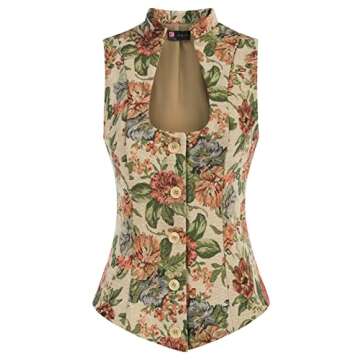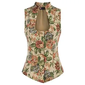 KANCY KOLE Womens Vintage Vest U Neck Button Down Tuxedo Suit Waistcoat Dressy Casual Versatile Full Line Jacquard Jackets(S, Flower Jacquard Khaki)