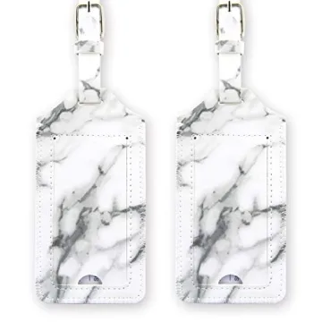 kandouren Luggage Tags 2 Pieces Set,White Marble PU Leather Travel Bag Tags for Cruise Ships,for Men and Women