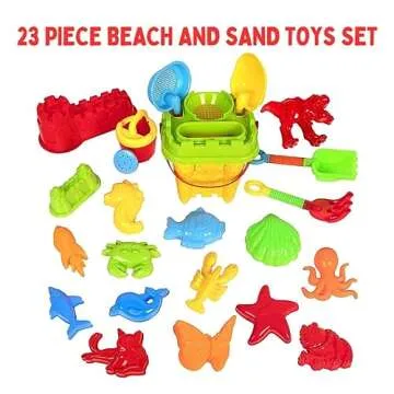Show more Introducing the ultimate companion for your child's outdoor adventures – our vibrant 23-piece sandbox toy set! This meticulously curated set includes all the essentials needed for endless summer fun, featuring a variety of toys such as a kids watering can, beach shovels, a sand rake, a sand sifter, and an array of enchanting sand molds shaped like animals. Your child can build, dig, and create to their heart's content, fostering their imagination and creativity while enjoying the sun and sand!