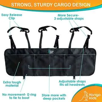 Show moreIntroducing the KangoKids Trunk Organizer, the perfect solution for families and individuals seeking a neat and orderly trunk space in their vehicle. Designed to fit seamlessly in both cars and SUVs, this lightweight trunk organizer boasts three large mesh pockets, providing ample storage for all your essential items. Whether you’re going on a long road trip, heading for a picnic, or simply managing your daily errands, this versatile organizer will keep your belongings secure and easily accessible. Its adjustable design allows for a snug fit, preventing it from sliding around during travel, while its easy installation means you can set it up within minutes—just loop the clips over your back seat headrests, and you’re ready to go!