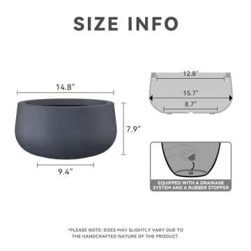 The planter has a diameter of 15.7 inches, making it spacious enough for various plants.