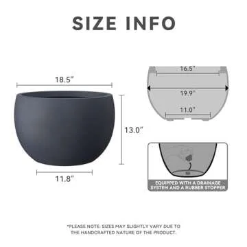 Kante 19.9" Dia Round Concrete Planter, Outdoor/Indoor Large Bowl Plant Pots with Drainage Hole and Rubber Plug for Garden Patio Balcony Home, Dark Gray