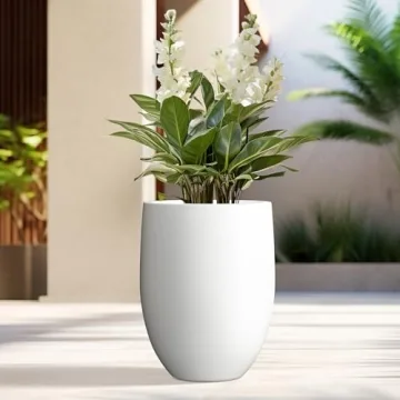 Show moreTransform your living space with the Kante 21.7" H Pure White Concrete Tall Planter, designed for both outdoor and indoor use. This large decorative pot effortlessly merges style, functionality, and durability into one stunning package. Crafted from a unique mix of concrete and fiberglass, this planter showcases a modern round style that can elevate any area. Its elegant curves and beautiful weathered finish make it a focal point in your garden, patio, or home décor, ensuring that every plant you house feels like a work of art. With a weight that ensures stability but is still easy to move around, this is an investment in both form and function that elevates your greenery.
