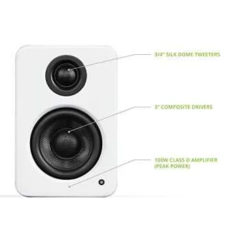 Kanto YU2MW PC Gaming Desktop Speakers | 3" Composite Drivers | 3/4" Silk Dome Tweeter | Class D Amplifier | 100 Watts | Built-in USB DAC | Subwoofer Output | Pair | Matte White