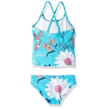 Kanu Surf girls Charlotte Flounce Tankini Beach Sport 2-piece Two Piece Swimsuit, Paige Aqua Floral, 10 US