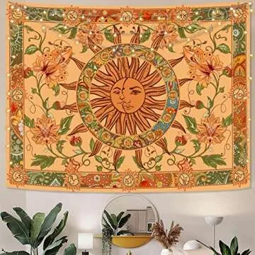 Show moreTransform your living space into a serene haven with the exquisite Kanuyee Yellow Sun and Moon Tapestry. This vintage indie boho tapestry is adorned with stunning motifs of sunflowers, butterflies, and moths that beautifully intertwine with constellation patterns. Measuring 50'' high × 60'' wide, this tapestry is the perfect statement piece for any room, from cozy bedrooms to vibrant living rooms. Crafted from 100% polyester, it strikes the perfect balance between durability and softness, ensuring a skin-friendly touch while maintaining a lightweight form for easy hanging.