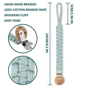 Kapihouse Pacifier Clip for boy 9.2 Inch Pacifier Leashes woodern Clips Teething Toy with Handmade Braided Cotton Modern Unisex Baby Shower Birthdays Christmas Set (3 Pack Boys)