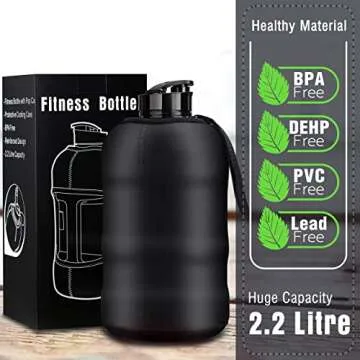 Kaptron Gym Water Bottle with Case - Bodybuilding Water Bottle - Strong Durable 2.2 Litre Water Bottle with Handle - BPA Free Large Half Gallon Sports Water Bottles (Black)