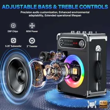 Karaoke Machine Portable Bluetooth Speaker with Bass/Treble Adjustment for Parties