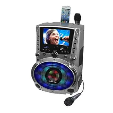 Show moreExperience the joy of singing with the KARAOKE USA GF758 DVD/CD+G/MP3+G Bluetooth Karaoke System, your ultimate companion for fun-filled karaoke nights! This versatile karaoke player is designed for players of all skill levels, whether you're a seasoned performer or just starting out. With its 7" TFT color screen, you'll enjoy vibrant graphics and clear lyrics as you belt out your favorite tunes. The system is compatible with DVD, CD+G, CD, MP3, and MP3-G, providing a wide range of music options to choose from.