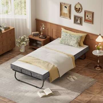 Karcog Rollaway Bed, Folding Bed with Mattress for Adults, Storage Cover Included, Cot Size Extra Guest Bed, Foldable Bed with Memory Foam Mattress and Sturdy Metal Frame on Wheels - 75” x 31"