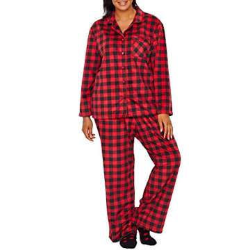 Karen Neuburger Women's Long Sleeve Minky Fleece Pajama Set PJ, Buffalo Plaid Cherry Red/Black, S