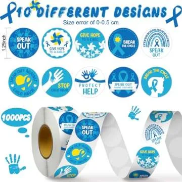 Karenhi 1000 Pcs Child Abuse Awareness Stickers for Kids Roll Shape Blue Ribbon Stickers for Kids Child Abuse Prevention Event Supplies