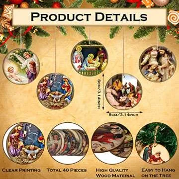 Karenhi 40 Pcs Christmas Nativity Scene Ornament Religious Christmas Wooden Hanging Ornament Retro Vintage Nativity Christian The Birth of Jesus Christmas Decorations for Xmas Tree Decorations Gifts