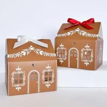 Karentology 20 Pcs Gingerbread House Shaped Gift Boxes for Treats, Desserts, Fancy Cookie, White Gable Bakery Packaging for Housewarming Holiday Christmas Valentines Halloween
