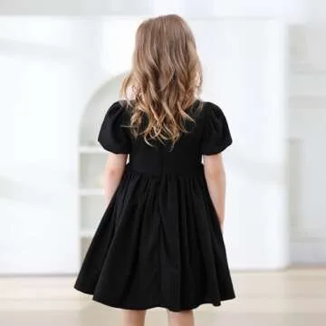 KARETT Toddler Girl Dress Vintage Dress Little Girls Cotton Puff Short Sleeve Dresses Swing Casual Elegant Formal Dress Black