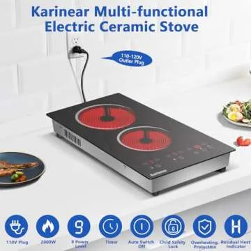 Safety is paramount with the Karinear electric cooktop. It showcases multiple safety features such as a child safety lock to prevent accidental activation, a residual heat indicator that alerts you when the surface is still hot, and overheat protection that automatically turns off the cooktop when it gets too hot. These features ensure peace of mind while cooking, making it a trustworthy companion in your kitchen.