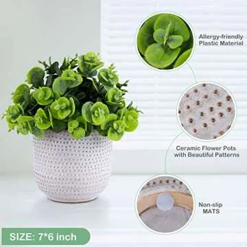 Show moreIntroducing the Karlliu Artificial Lysimachia Plants, the perfect solution to bring a touch of vibrant greenery into your space without any fuss! Designed from advanced PE materials, these adorable artificial topiaries resemble natural plants more closely than any others available on the market. With their lifelike appearance, these charming pots instantly brighten up any area in your home or office, creating a warm and inviting atmosphere. Standing at a convenient height of 5 inches and a width of 6 inches, these beautiful plants fit perfectly on desks, dining tables, and shelves, adding a stylish flair that complements various furniture.