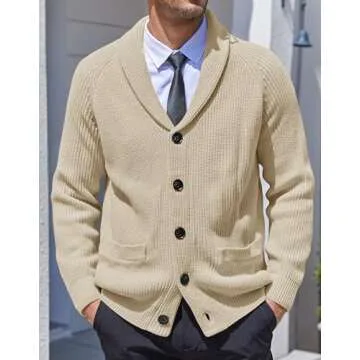 Show moreIntroducing the Karlywindow Men's Shawl Collar Cardigan Sweater, the ultimate blend of style and comfort for the modern man. Designed with an eye-catching cable knit pattern, this chunky sweater features a sophisticated shawl collar that adds a touch of elegance to any outfit. Its button-down closure offers versatility, allowing you to wear it fully buttoned for a polished look or unbuttoned for a relaxed vibe. With two spacious patch pockets, you'll have ample room for essentials or simply keeping your hands cozy. Made from a high-quality blend of 95% Acrylic and 5% Spandex, this sweater is not only soft and lightweight but also durable and breathable, ensuring you remain comfortable during those chilly days.
