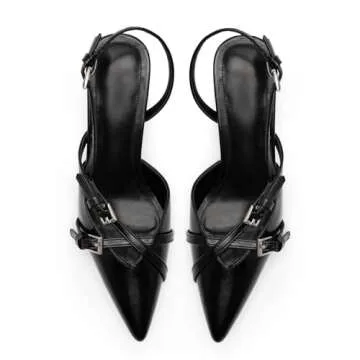 KaroNairy Kitten Heels for Women Pointed Toe Slingback Heels Closed Toe Low Heel Wedding Dress Pumps with Buckles Black8