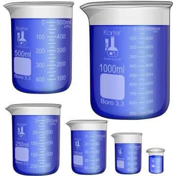 Karter Scientific, 3.3 Boro, Griffin Low Form, Glass Beaker Set - 6 Sizes - 10ml, 50ml, 100ml, 250ml, 500ml, 1000ml