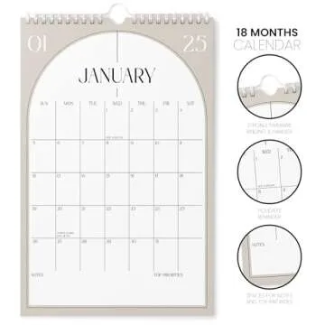 Karto Wall Calendar 2025 - Vertical 11x17 inch Runs Until June 2026 - Boost Your Productivity and Easy Planning with the Aesthetic Monthly Calendar - Boho Beige