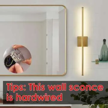 Show moreIntroducing the KARTOOSH Hardwired Wall Sconces Set of Two, a perfect fusion of style and functionality for your modern living spaces. Measuring a generous 27.8 inches in length, these sleek sconces feature a stunning brushed brass finish that adds a touch of luxury and elegance to any décor. Designed to enhance your home with warm, inviting 3000K LED light, these fixtures not only illuminate but also transform the atmosphere of your room, making them an essential addition to your bathroom, living room, hallway, or media room.
