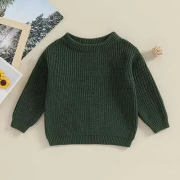 Karwuiio Toddler Baby Girl Boy Knit Sweater Round Neck Long Sleeve Pullover Sweatshirt Fall Winter Clothes (Dark Green, 3-6 Months)