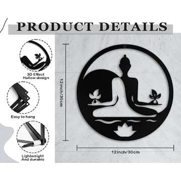 Kas Home Metal Zen Wall Decor Iron Buddha Wall Art Zen Lotus Spiritual Meditation Decor for Living Room Bedroom Yoga Studio Office Wall Décor (Black, 12x12inch)