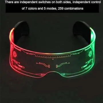 One of the most exciting features of these glasses is the multiple color combinations they offer. With a palette of 7 different colors and 4 unique modes, you can mix and match up to 259 flash combinations to seamlessly align with your personal style or mood. Whether you're at a nightclub, concert, or festival, these glasses will ensure you become the life of the party as you dazzle everyone around you!