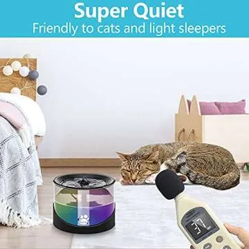 Kastty Super Quiet Water Fountain for Cats Inside, Pet Water Fountain for Kitty, Cat Waterer, Dog Bowl Dispenser 2.2L/74oz,with Super Long Life Span Pump, Black+Colorful LED Light
