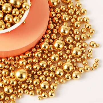 Kasvan Gold Pearl Sugar sprinkles - Edible Candy Pearls 130g/4.58 Oz, Mix Size Cake Candy, Decorate Cakes, Cookies, Ice Cream (Bright Gold)
