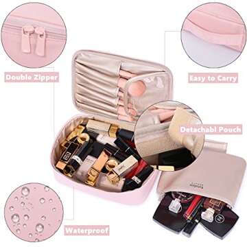 Katadem Large Capacity Makeup Bag - Cosmetic Travel Bag for Women & Girls, Pink, Travel Size, Water Resistant, Leak Proof