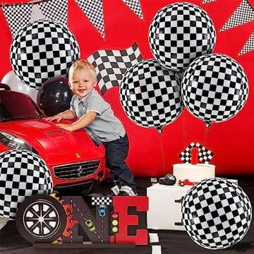 KatchOn, Black and White Checkered Balloons - 22 Inch, Pack of 6 | 4D Checker Balloons, Checkered Flag Balloons, Race Car Balloons | Checkered Flag Party Supplies, Racing Balloons for Emo Party Decor