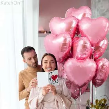 KatchOn, Light Pink Heart Balloons -18 Inch, Pack of 10 | Heart Shaped Balloons | Pink Heart Balloons, Valentines Day Decorations | Valentines Day Balloons, Foil Heart Balloons, Galentines Day Decor