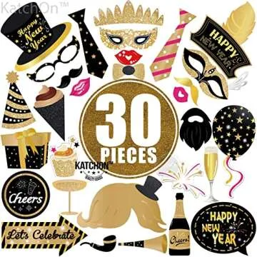 KatchOn, New Years Photo Booth Props 2025 - Pack of 30 | Glitter New Years Eve Photo Booth Props 2025 for New Years Eve Party Supplies 2025 | NYE Party Favors 2025 for Happy New Years Decorations 2025