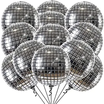 Each pack contains 12 of the 22 inch silver disco ball balloons.